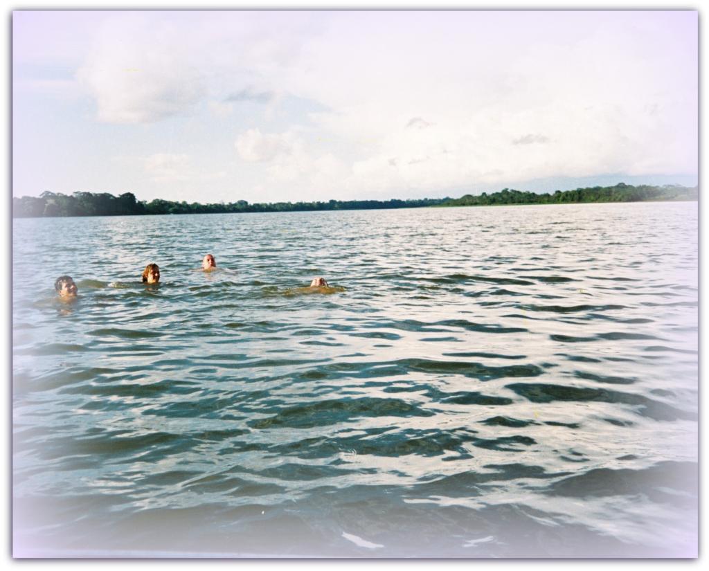 Jak tak stojíme očarováni, tiše a nehybně uprostřed Ucayali, Cielo nám servíruje další zážitek. Skáče do té teplé a propastné tůně. Po chvíli se s úsměvem vynoří a gestem nás pobízí k následování. Sedíme jak zkamenělí. Žertuje? Provokuje? Ale hrdost vítězí nad strachem. První se odvážila Ivona…